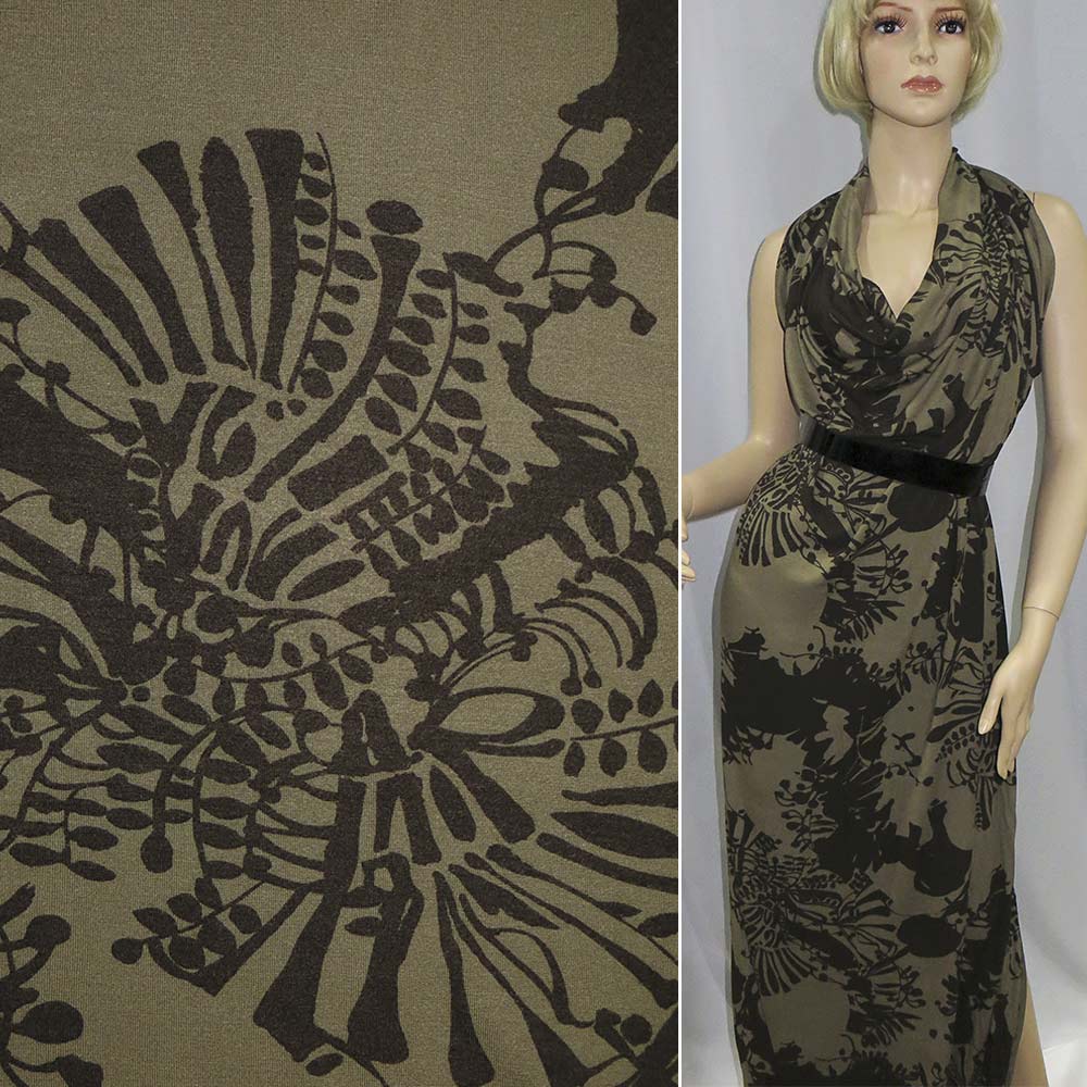Трикотаж вискозный стрейч коричневый светлый с темно-коричневым абстрактным рисунком ш.147 купить в розницу и оптом