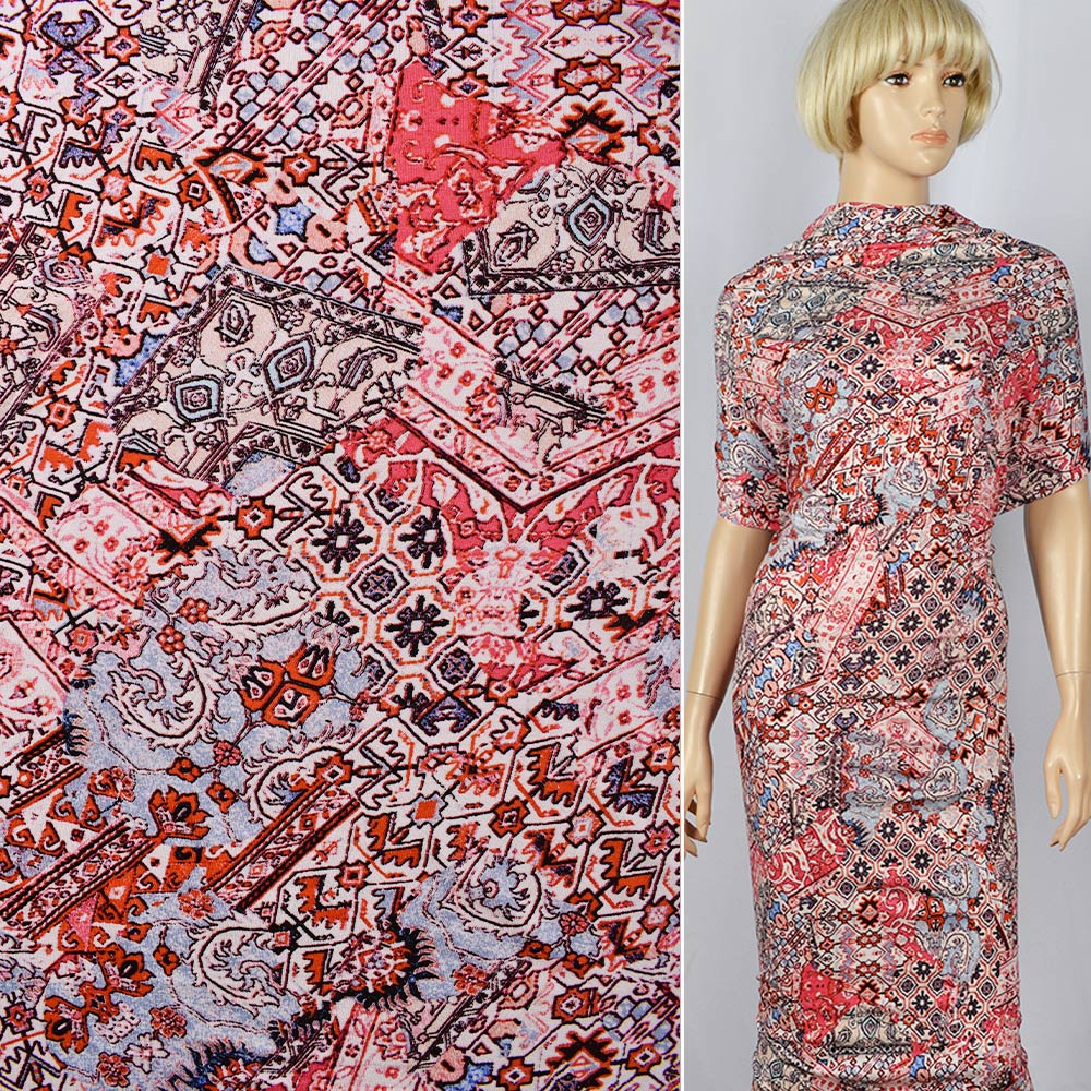 Трикотаж вискозный стрейч "Elastic Jersey D" белая в оранжево-черный орнамент ш.145 купить в розницу и оптом