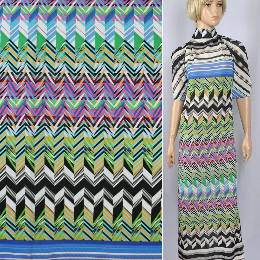 Трикотаж вискозный стрейч мокрый с розово-зелено-голубой елочкой ш.150 купить в розницу и оптом