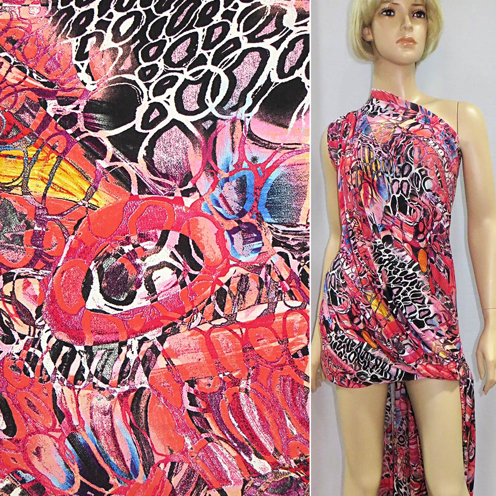 Трикотаж вискозный стрейч морковно-черный овалы ш.150 купить в розницу и оптом