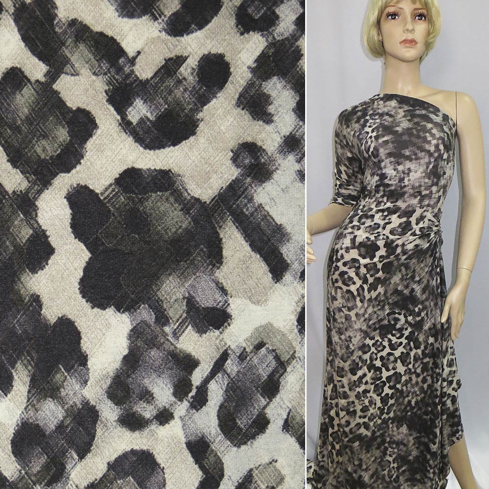 Трикотаж вискозный стрейч песочно-фиолетовый темный принт леопард ш.149 купить в розницу и оптом