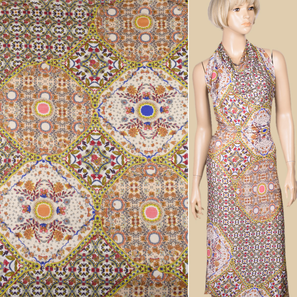 Трикотаж вискозный стрейч песочно-серый с мелкими цветами и овалами ш.150 купить в розницу и оптом