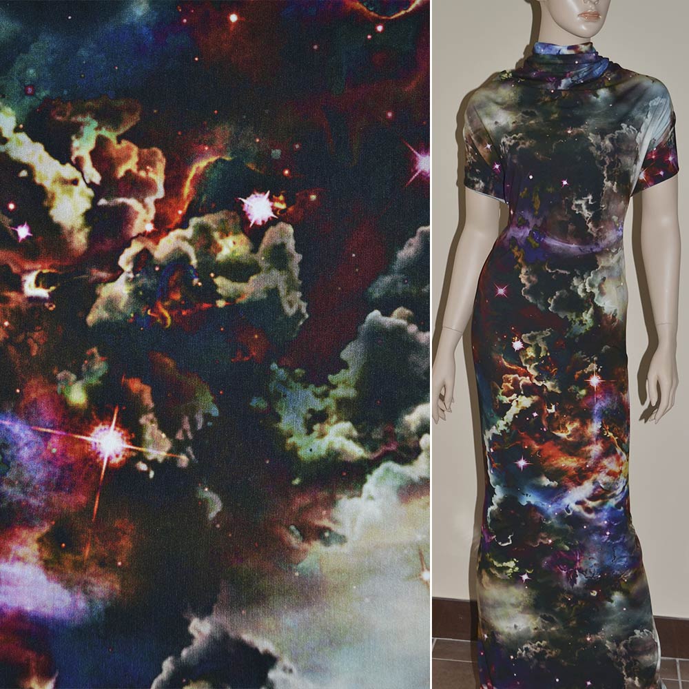 Трикотаж вискозный стрейч серо-черный с разноцветной абстракцией "огоньки" ш.148. Состав ткани: Вискоза-96, Эластан-4. Плотность ткани: 224 г/м.кв. Страна производитель: Германия. Трикотаж - это мягкая плотная материя, не прозрачная. Приятная на ощупь, комфортная в носке. Благодаря содержанию синтетических материй, материал более износостойкий и надолго сохраняет свой первоначальный вид. Ткань отличается своей приятной текстурой, хорошей растяжимостью, практически не мнется. Трикотаж достаточно простой в уходе. Используется для пошива платьев, спортивных костюмов, легких жакетов, поло, футболок и многого другого.