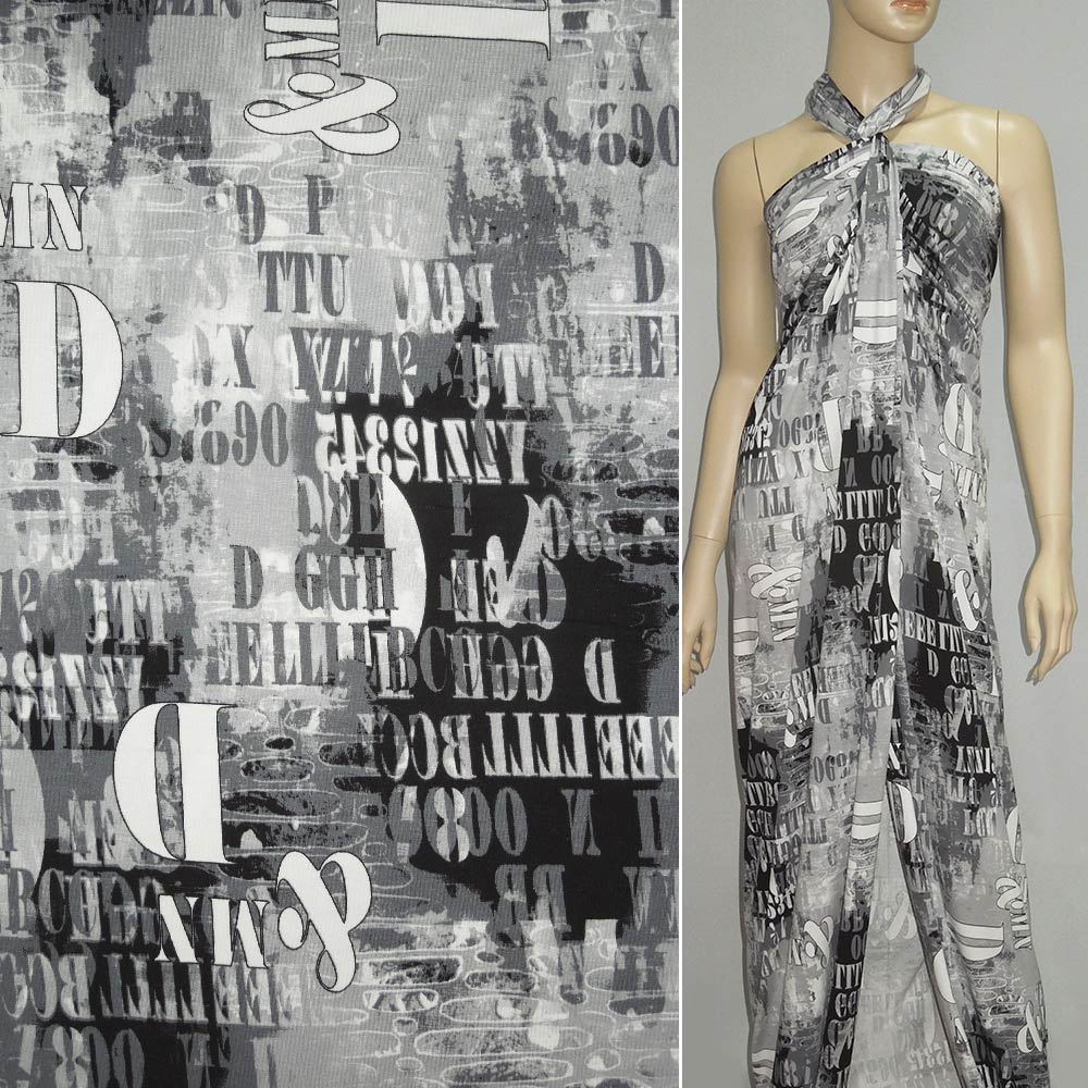 Трикотаж вискозный стрейч серый буквы ш.150 купить в розницу и оптом