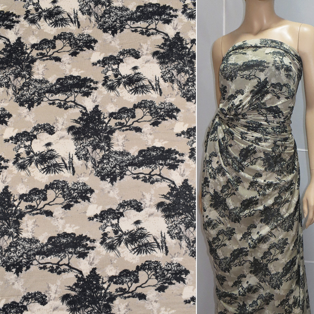 Трикотаж вискозный стрейч серый с черными деревьями ш.137 купить в розницу и оптом
