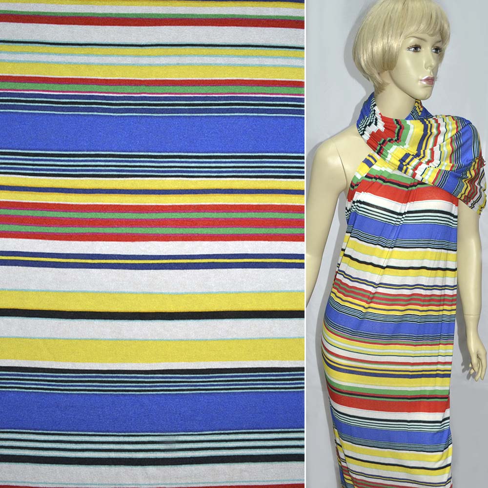 Трикотаж вискозный стрейч в полосы белые, желтые, синие, красные ш.140 купить в розницу и оптом