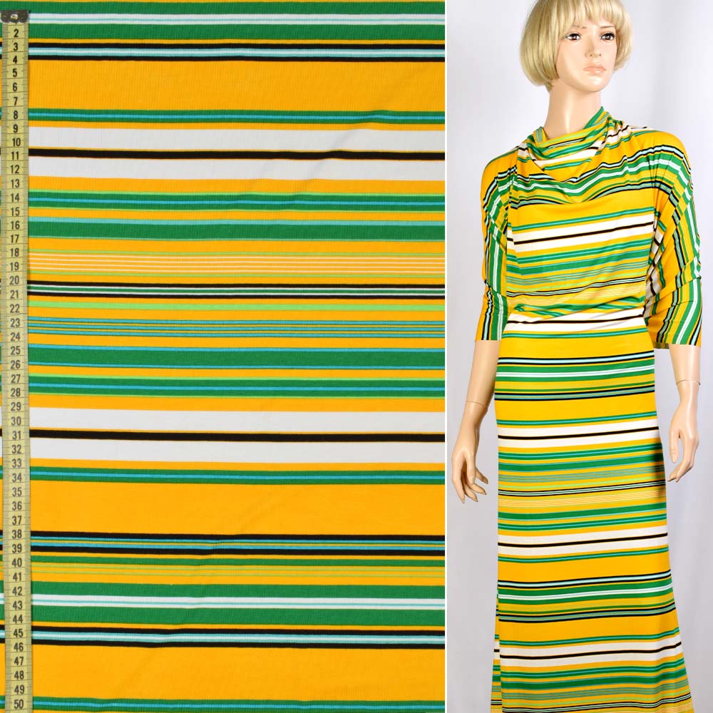 Трикотаж вискозный стрейч в полосы желтые, белые, зеленые, черные, ш.148 купить в розницу и оптом