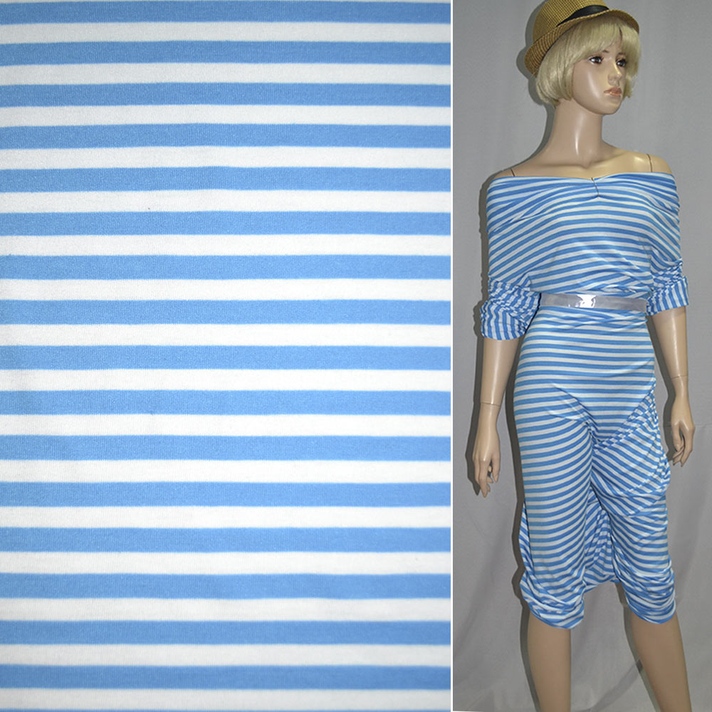 Трикотаж с вискозой в полоски белые и голубые ш.170 купить в розницу и оптом