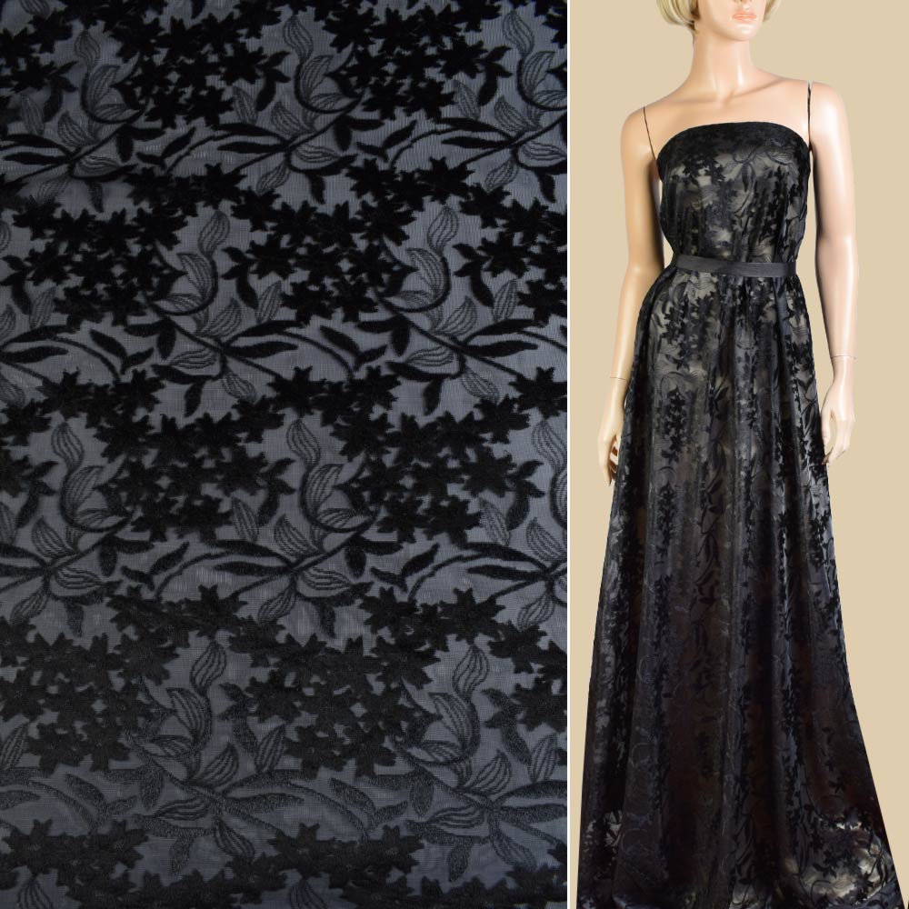 Бархат на трикотажном шифоне черный, ш.150 купить в розницу и оптом