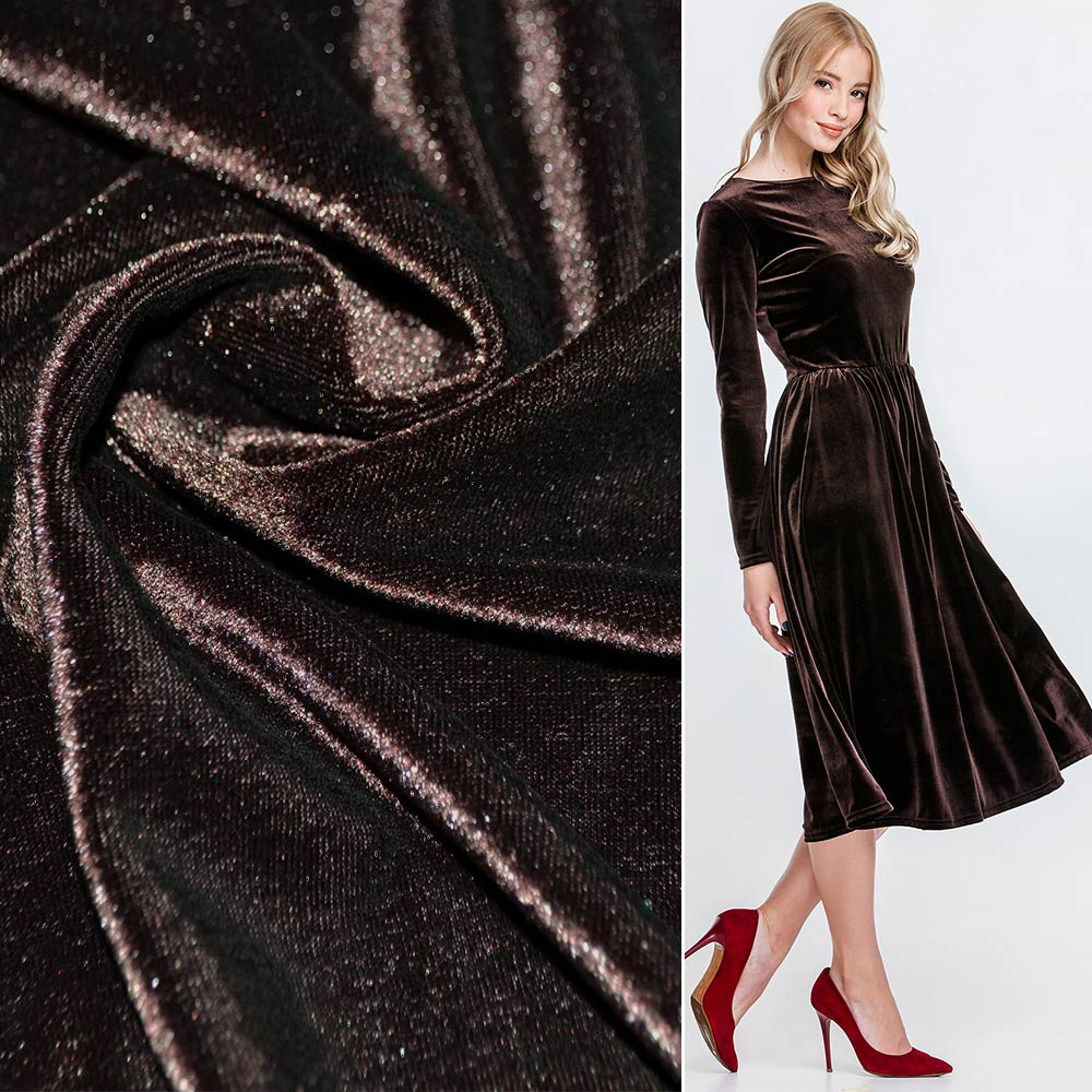 Велюр стрейч темно-коричневый ш.150 купить в розницу и оптом