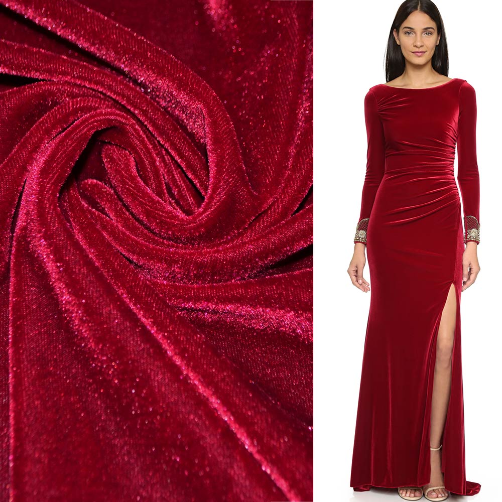 Велюр стрейч темно-красный ш.150 купить в розницу и оптом