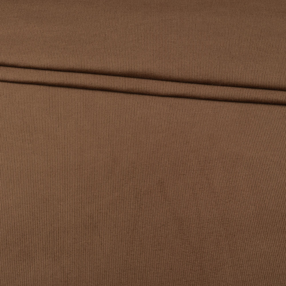 Микровельвет стрейч молочно-коричневый ш.150. Состав ткани: Хлопок-97, Эластан-3. Плотность ткани: 291 г/м.кв. Страна производитель: Южная Корея. Вельвет отличается от других материалов характерными продольными полосами-рубчиками из ворса на лицевой стороне. Изнанка у материала ровная и похожая на холст. Он бархатистый, с мягкой фактурой и приятный на ощупь. Игра света, отражаясь между рядами, придает полотну легкий блеск и благородный вид.