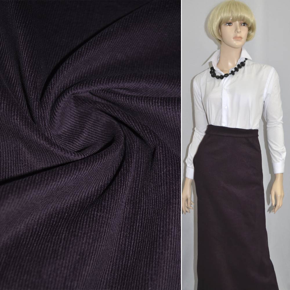 Микровельвет стрейч темно-фиолетовый ш.150. Состав ткани: Хлопок-97, Эластан-3. Плотность ткани: 291 г/м.кв. Страна производитель: Южная Корея. Вельвет — это плотная ткань с бархатистой текстурой, обычно хлопчатобумажная. От бархата ее отличает наличие рубчиков на ворсистом покрытии. Они придают дополнительную устойчивость к истиранию и привлекательный вид. Обладает теплосберегающими свойствами, гигроскопичностью, драпируется мягко в струящиеся, обтекаемые складки. Ткань практичная, легко восстанавливается после смятия и не капризная в уходе. Подходит для пошива изделий с мягкой формой, костюмов, юбок, платьев, рубашек, комбинезонов и аксессуаров.