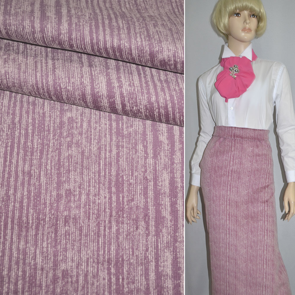 Вельвет стрейч розово-белый, ш.145 купить в розницу и оптом