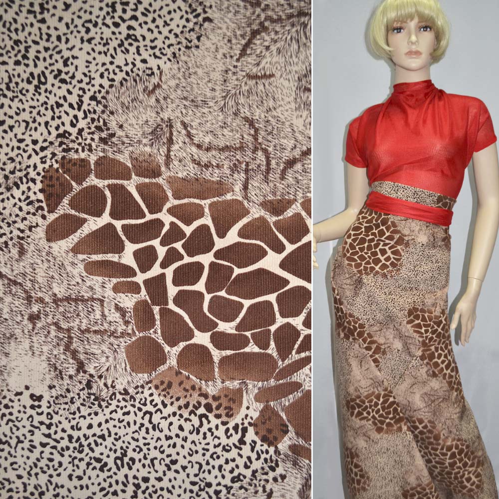 Вельвет стрейч животный принт коричневый ш.140 купить в розницу и оптом