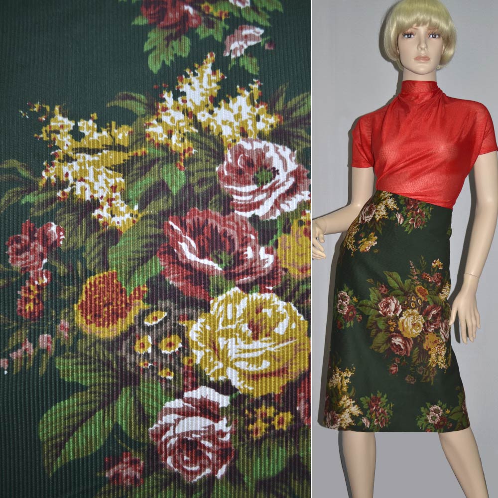 Вельвет темно-зеленый с бордовыми розами, ш.150. Состав ткани: Хлопок-100. Плотность ткани: 269 г/м.кв. Страна производитель: Южная Корея. Вельвет — ворсистая ткань, которую трудно не узнать: отличается наличием на лицевой стороне рубчика различной ширины. Изделия, выполненные из этого материала, сохранят безупречную форму, вид и цвет в течение всего срока эксплуатации, при условии, что вы обеспечите им должный уход – своевременную стирку, глажку и сушку при соответствующем режиме. Ткань обладает целым рядом достоинств: эстетична и долговечна, хорошо держит тепло, сохраняет форму, практична в уходе.