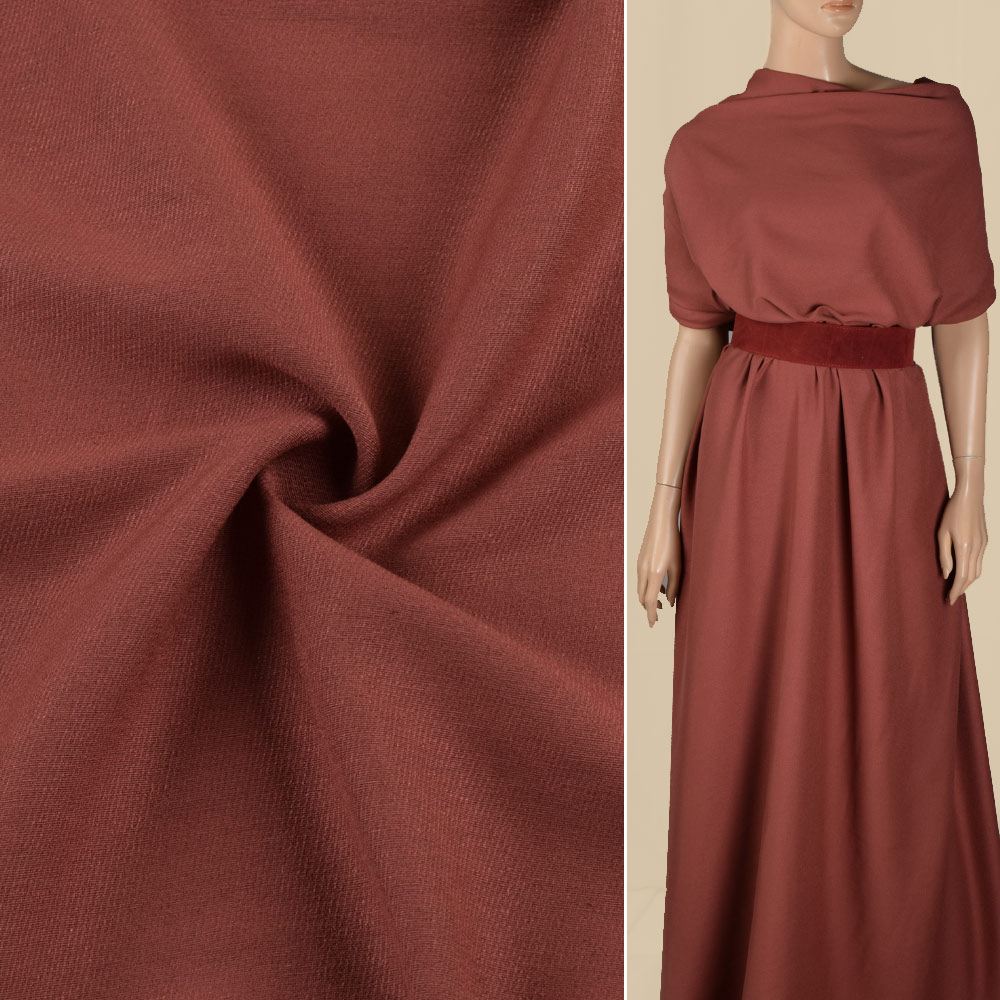 Поливискоза терракотовая ш.150. Состав ткани: Вискоза-60, Полиэстер-40. Плотность ткани: 187 г/м.кв. Страна производитель: Южная Корея. Поливискоза аналог натуральных материалов, способный достойно заменить такие ткани как хлопок, шелк или лен. За счет полиэстера ткань обладает износостойкостью и долговечностью. Натуральная целлюлоза придает материалу качества хлопка и гигроскопичность. Поливискоза характеризуется как мягкий и нежный материал с блестящей или матовой поверхностью. Поливискоза является теплой и немнущейся тканью, и идеально подходит для пошива костюмов, брюк, верхней и детской одежды, предметов домашнего текстиля, является удобным подкладочным материалом. Одежда из поливискозы поддерживает терморегуляцию: в ней не холодно зимой и не жарко летом. Она не вызывает аллергии, как шерсть и другие ворсистые материалы.