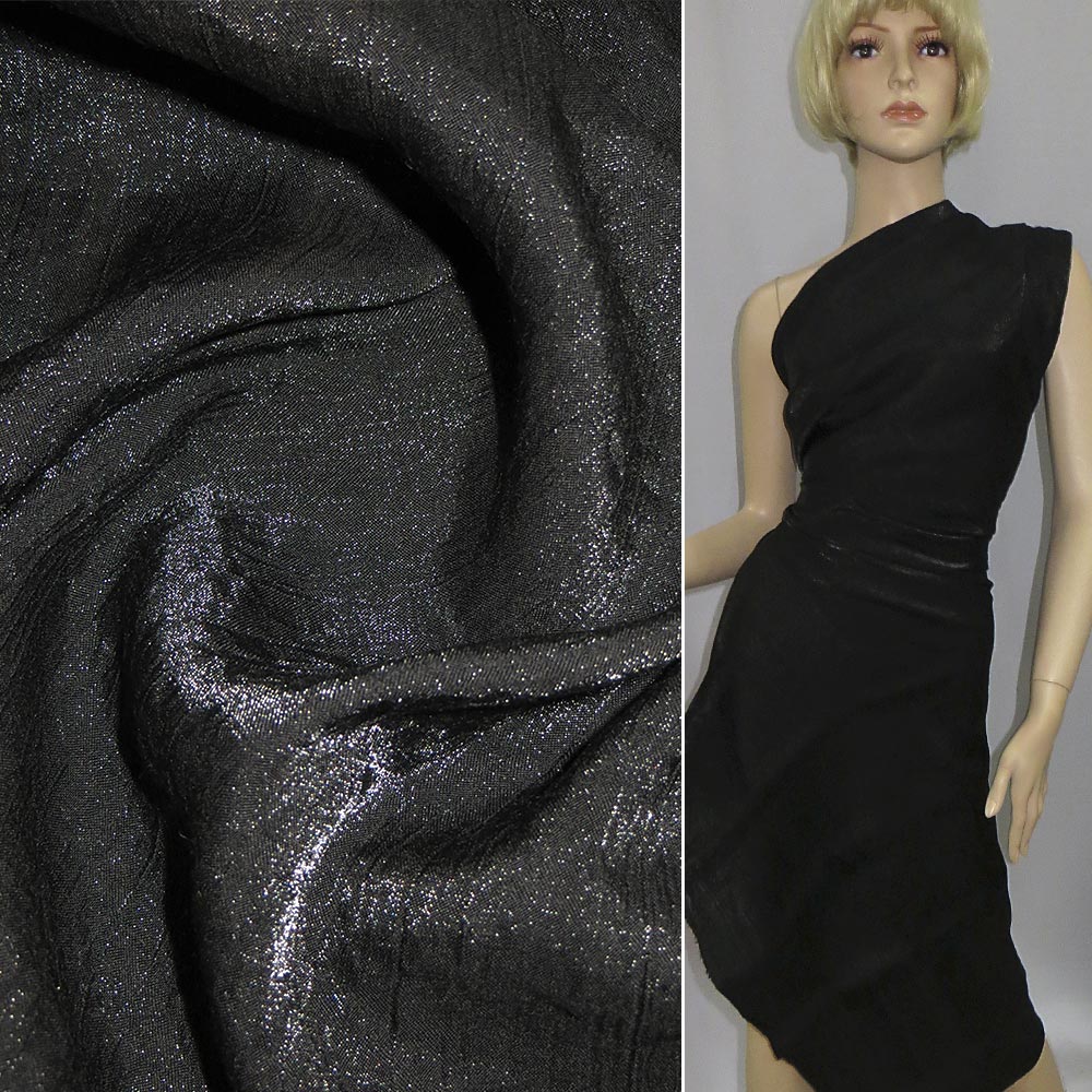 Вискоза с органзой жатая черная, ш.140 купить в розницу и оптом