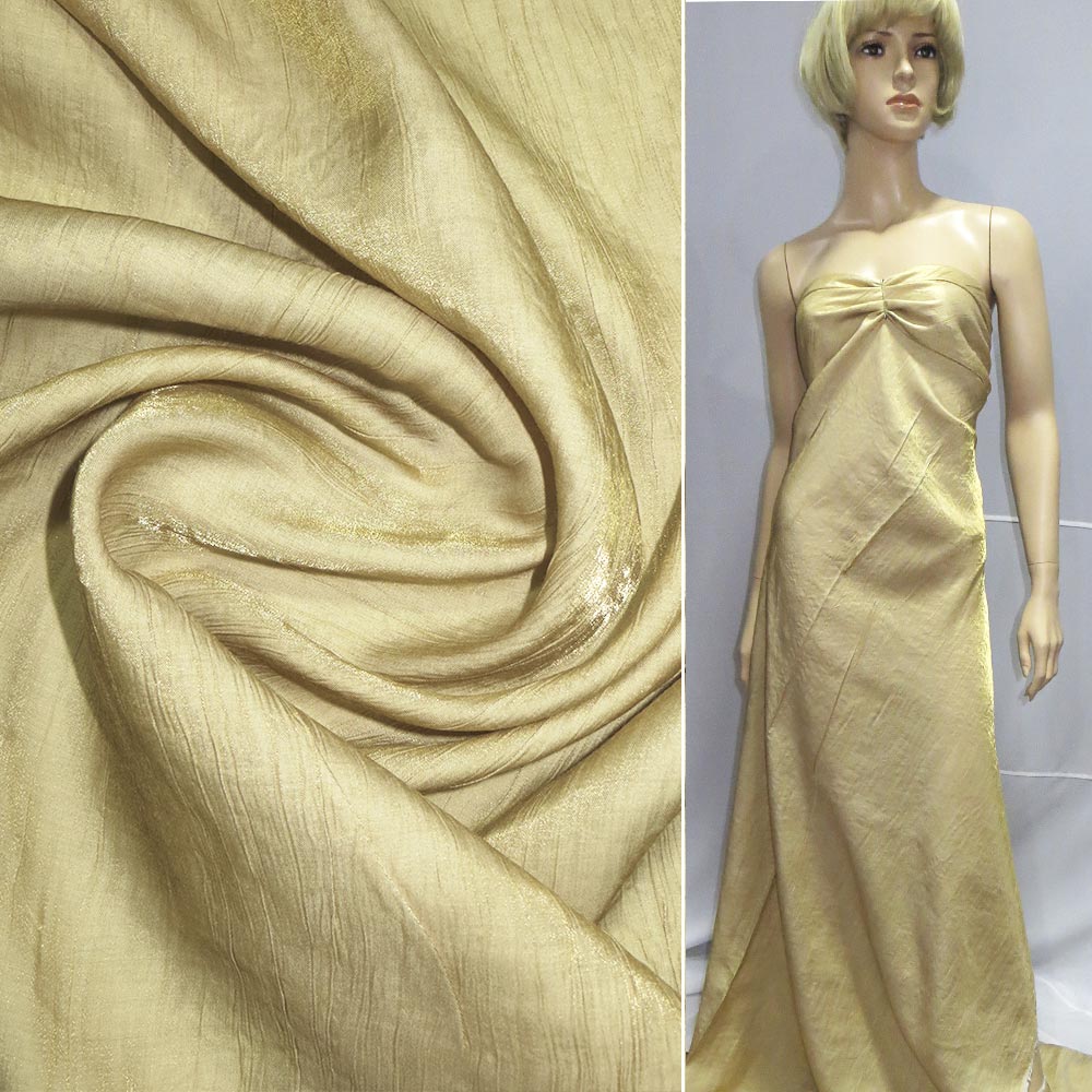 Вискоза с органзой жатая золотистая светлая, ш.140 купить в розницу и оптом