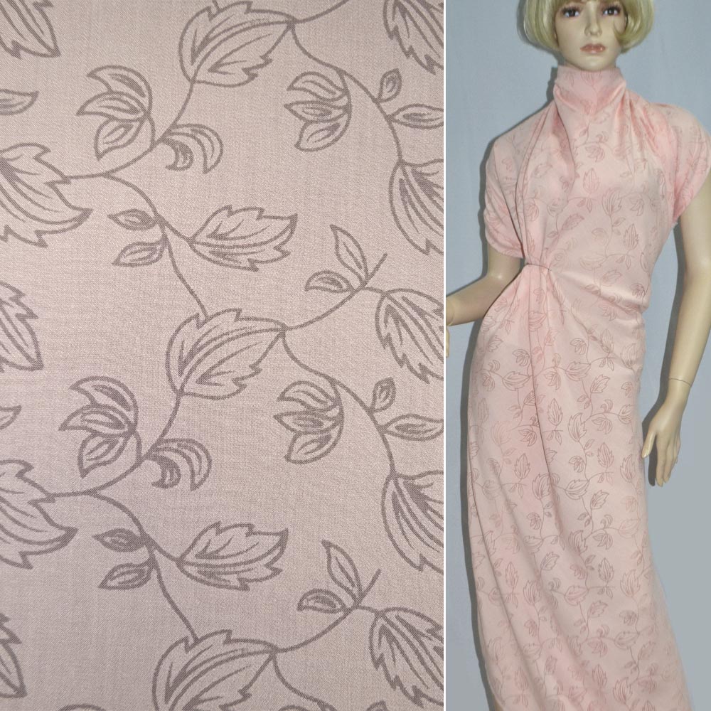 Вискоза деворе розово-персиковая в цветы. Состав ткани: Вискоза-100. Плотность ткани: 99 г/м.кв. Страна производитель: Южная Корея. Вискоза – это достаточно интересный материал, тем, что он может быть похож на шелк, шерсть или лен. Ткань, которая получается из вискозы очень приятная и мягкая на ощупь, образовывает на изделиях красивые складки. Из-за своей достаточно высокой гигроскопичности, вискоза способна впитать много влаги, так, например, по сравнению с хлопком, она впитывает ее в два раза больше. Из вискозного полотна шьют одежду, так как «нетканка» впитывает влагу и «дышит», при этом никогда не вызывает аллергию. Чаще всего из вискозы шьют подкладки для одежды. В домашнем хозяйстве можно часто встретить вискозное постельное белье, скатерти, шторы.
