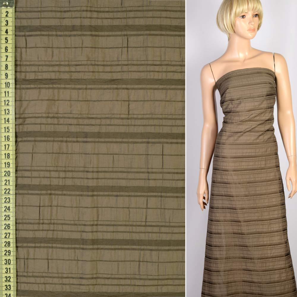 Коттон жатый в полоску коричневый, ш.140. Состав ткани: Вискоза-18, Полиамид-28, Хлопок-54. Плотность ткани: 58 г/м.кв. Страна производитель: Германия. Рубашечная ткань - тонкая, имеет гладкую поверхность. Качественный состав материала обеспечивает гигроскопичность, практичность и функциональность. Благодаря натуральным волокнам, ткань не вызывает аллергических реакций и долгое время сохраняет свой первоначальный вид. Ткань качественная, приятная к телу, слегка держит форму, хорошо драпируется.