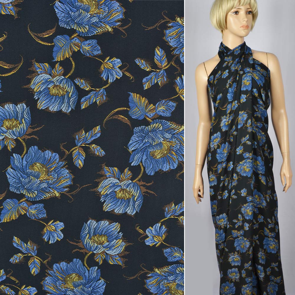 Креп вискозный черный с сине-желтыми цветами ш.145 купить в розницу и оптом