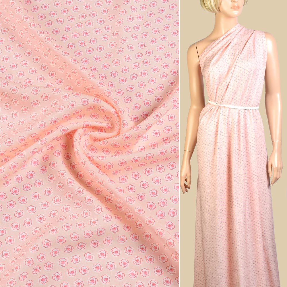 Вискоза розовая в мелкие розовые розы ш.140 купить в розницу и оптом