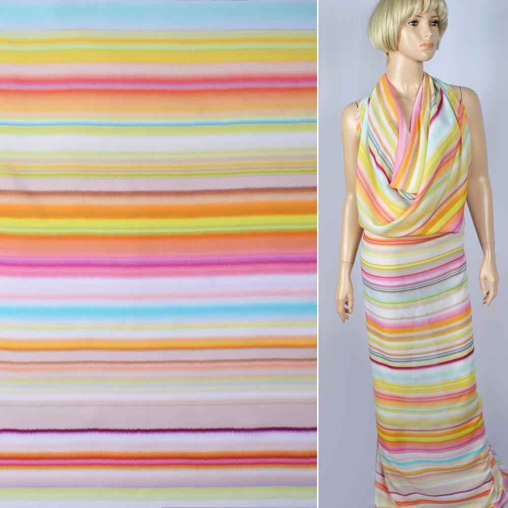 Вискоза в розово-бежево-желтые полосы ш.143 купить в розницу и оптом