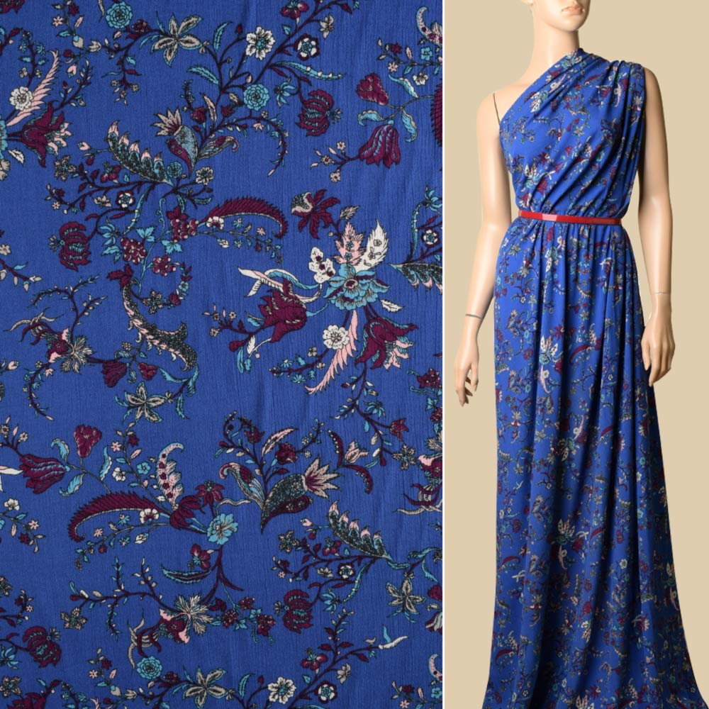 Вискоза синяя, бордовые, голубые цветы, ш.135 купить в розницу и оптом