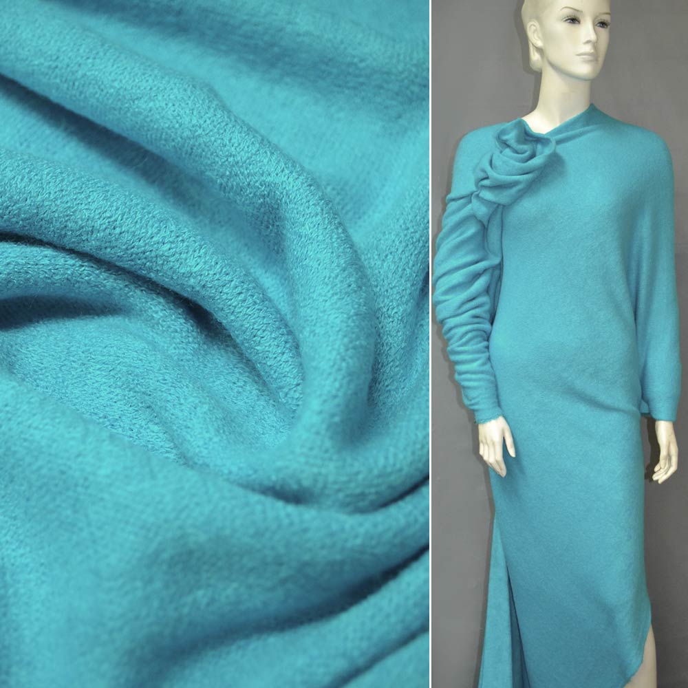Трикотаж с шерстью вязаный бирюзовый яркий ш.176 купить в розницу и оптом