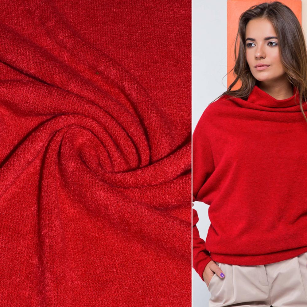 Трикотаж с шерстью вязаный красный яркий ш.175 купить в розницу и оптом