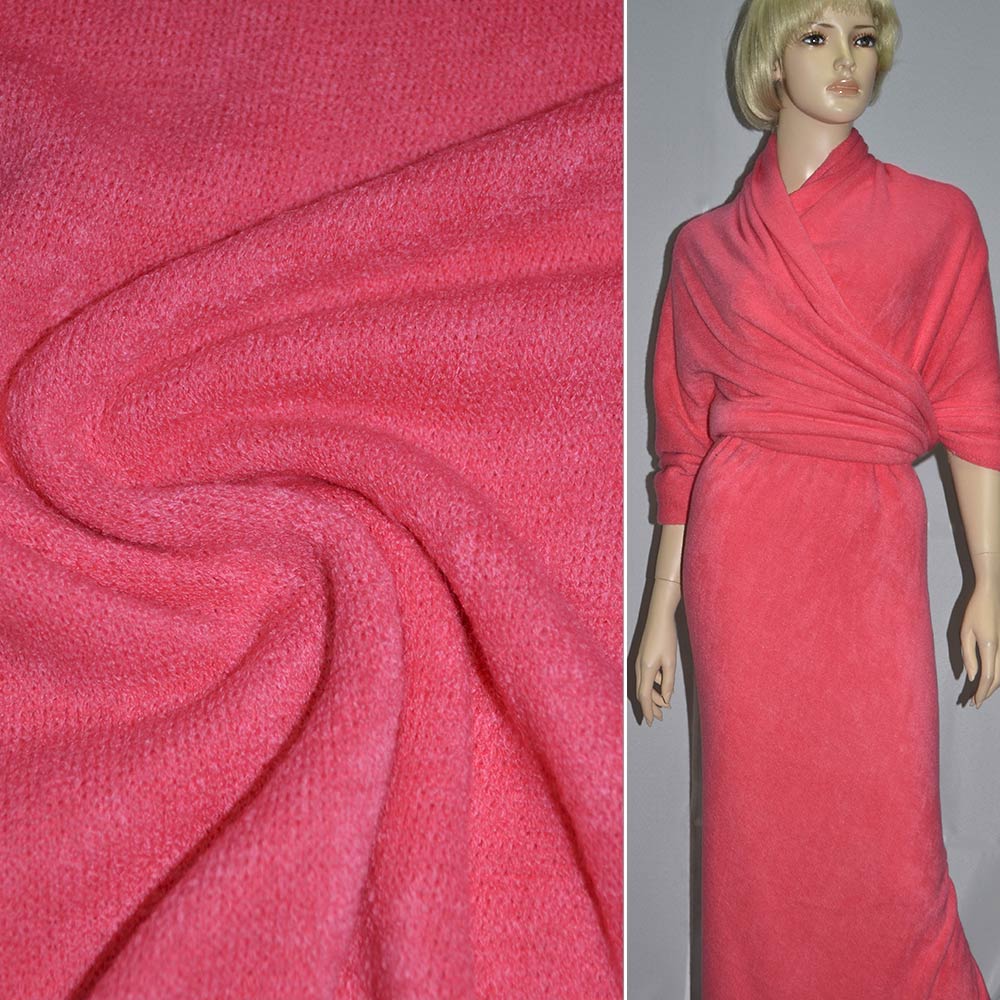 Трикотаж с шерстью вязаный розовый яркий ш.170 купить в розницу и оптом