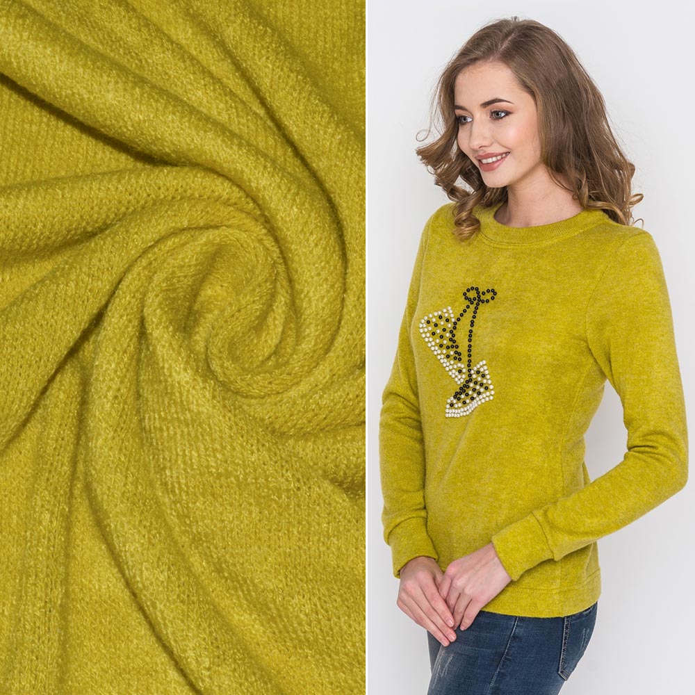 Трикотаж с шерстью вязаный желто-салатовый ш.175 купить в розницу и оптом