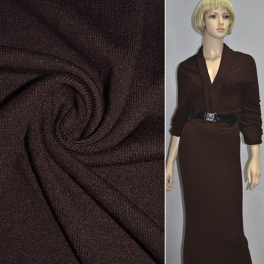 Трикотаж шерстяной коричневый ш.150. Состав ткани: Полиакрил-50, Шерсть-45, Эластан-5. Плотность ткани: 310 г/м.кв. Страна производитель: Южная Корея. Трикотаж - это мягкая плотная материя, не прозрачная. Приятная на ощупь, комфортная в носке. Благодаря содержанию синтетических материй, материал более износостойкий и надолго сохраняет свой первоначальный вид. Наличие шерсти делает материал более теплым. Ткань отличается своей приятной текстурой, хорошей растяжимостью, практически не мнется. Трикотаж достаточно простой в уходе. Используется для пошива платьев, спортивных костюмов, легких жакетов, поло, футболок и многого другого.
