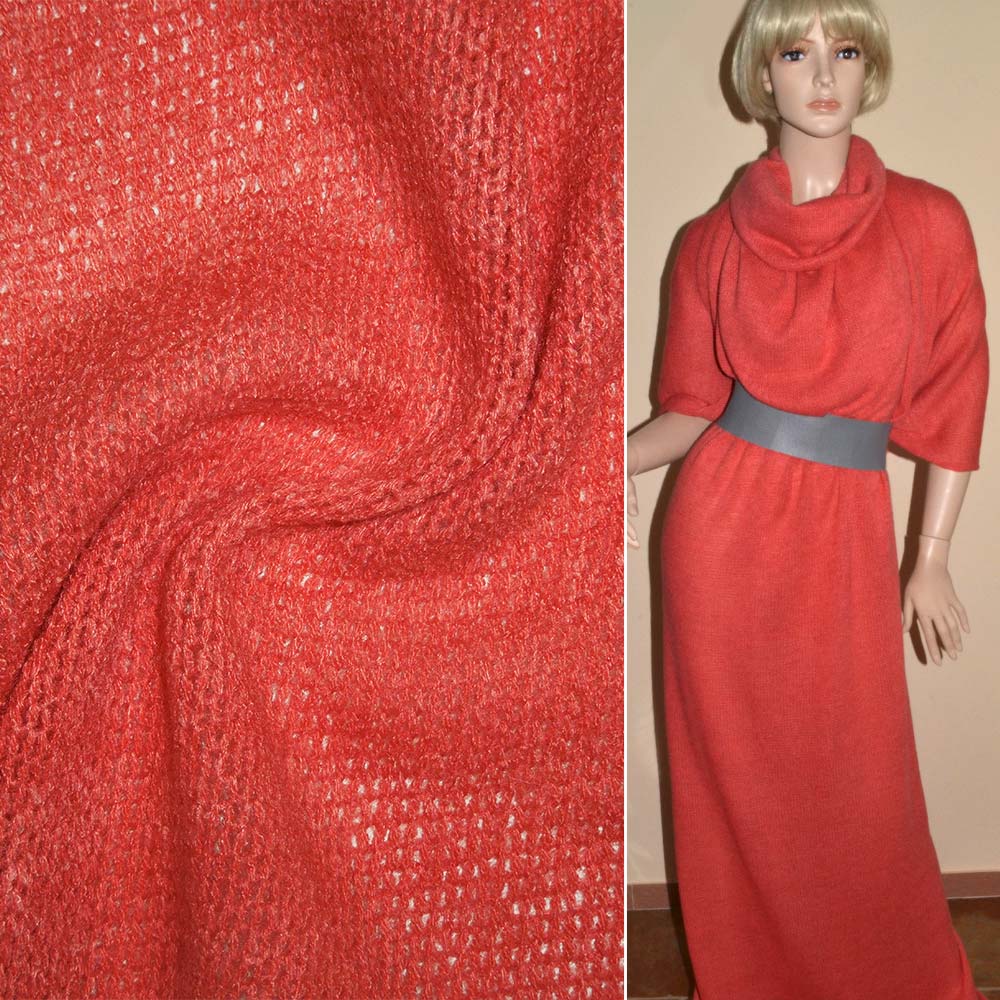 Трикотаж с шерстью вязаный коралловый ш.170 купить в розницу и оптом