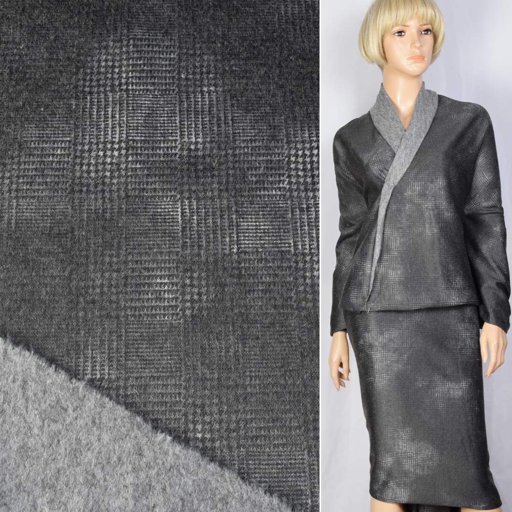 Трикотаж с шерстью двухсторонний BECKER серый/серый в клетку, ш.152 купить в розницу и оптом