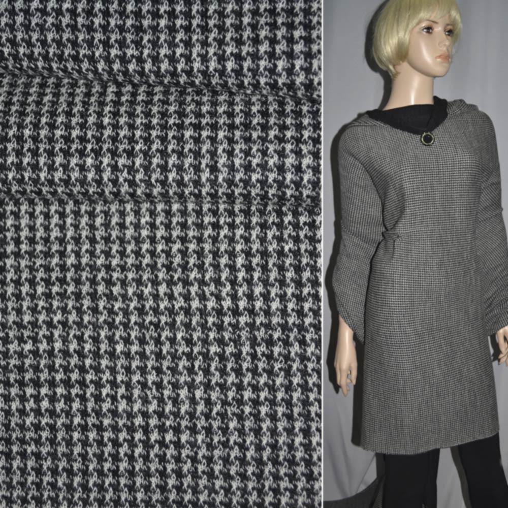 Трикотаж шерстяной черно-белый зигзаг ш.110. Состав ткани: Шерсть-100. Плотность ткани: 331 г/м.кв. Страна производитель: Германия. Трикотаж - это мягкая плотная материя, не прозрачная. Приятная на ощупь, комфортная в носке. Благодаря содержанию синтетических материй, материал более износостойкий и надолго сохраняет свой первоначальный вид. Наличие шерсти делает материал более теплым. Ткань отличается своей приятной текстурой, хорошей растяжимостью, практически не мнется. Трикотаж достаточно простой в уходе. Используется для пошива платьев, спортивных костюмов, легких жакетов, поло, футболок и многого другого.