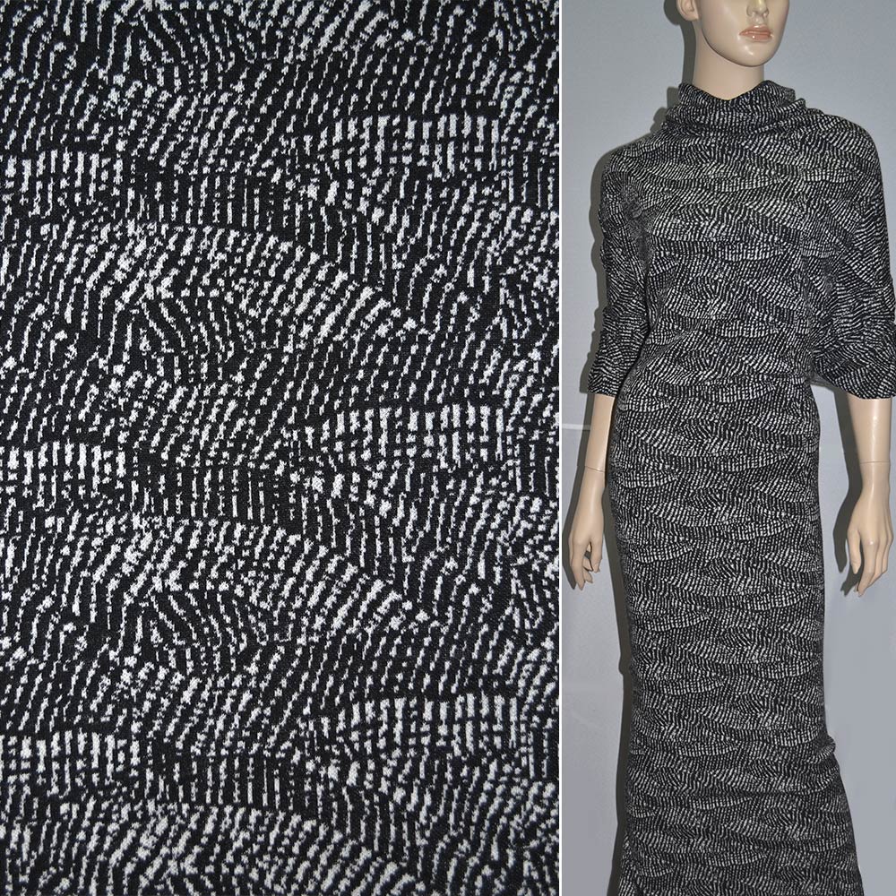 Трикотаж шерстяной черный с белыми штрихами ш.150 купить в розницу и оптом