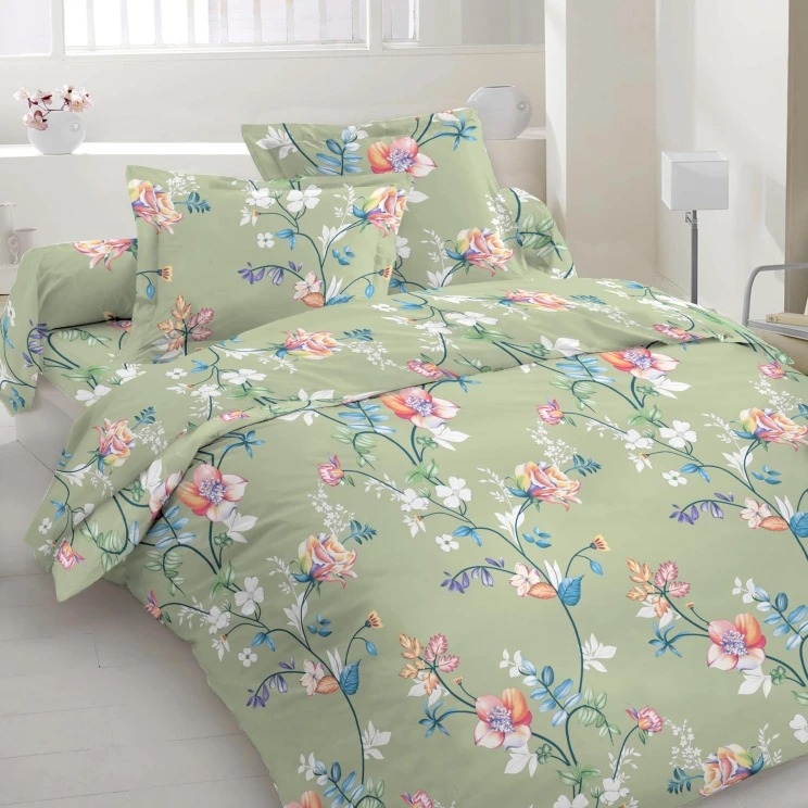 Бязь набивная серо-зеленая, оранжево-розовые цветы, ш.220 купить в розницу и оптом