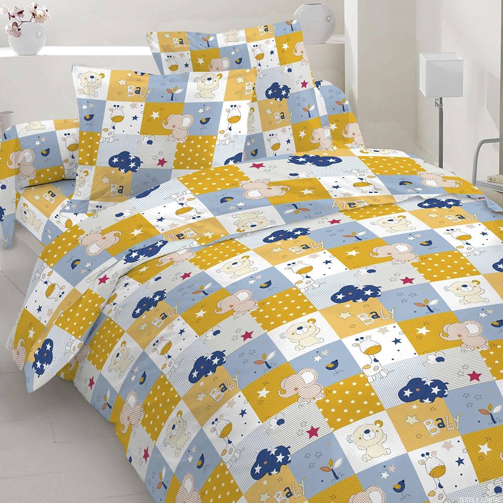 Бязь набивная желто-голубые квадраты BABY игрушки, ш.220 купить в розницу и оптом