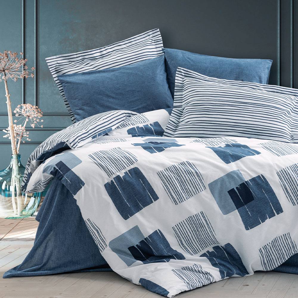 Комплект постельного белья Cotton box Ранфорс Modern Solito Indigo Евро 200x220см (1733-1128) купить в розницу и оптом