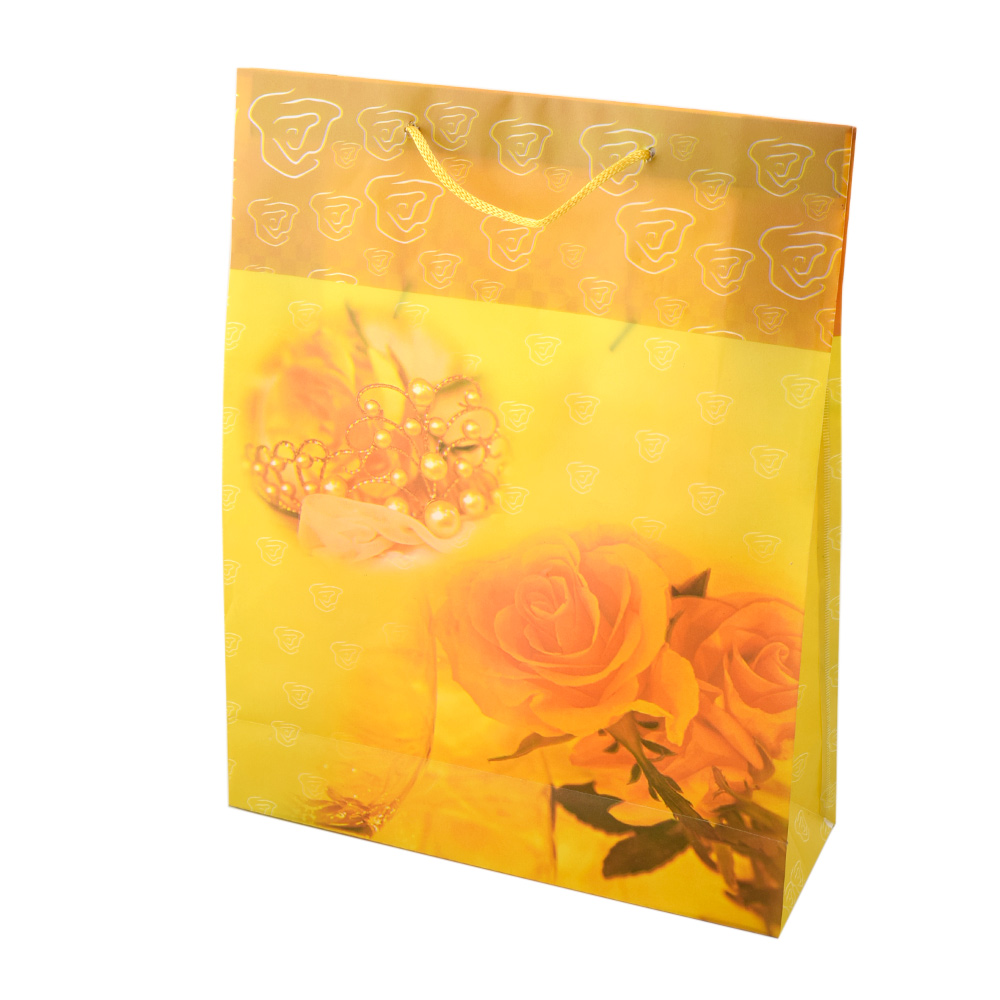 Пакет подарочный 38х30 см с розами желто-бежевый купить в розницу и оптом