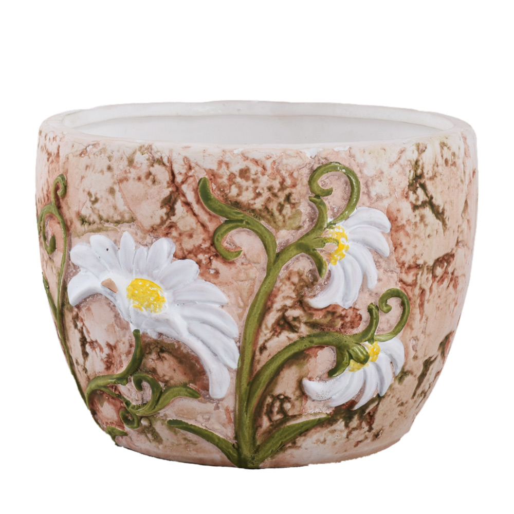 Кашпо керамика с ромашками бочонок 10х14,5х14,5см вн. 9,5х12,5х12,5см светло-терракотовое купить в розницу и оптом