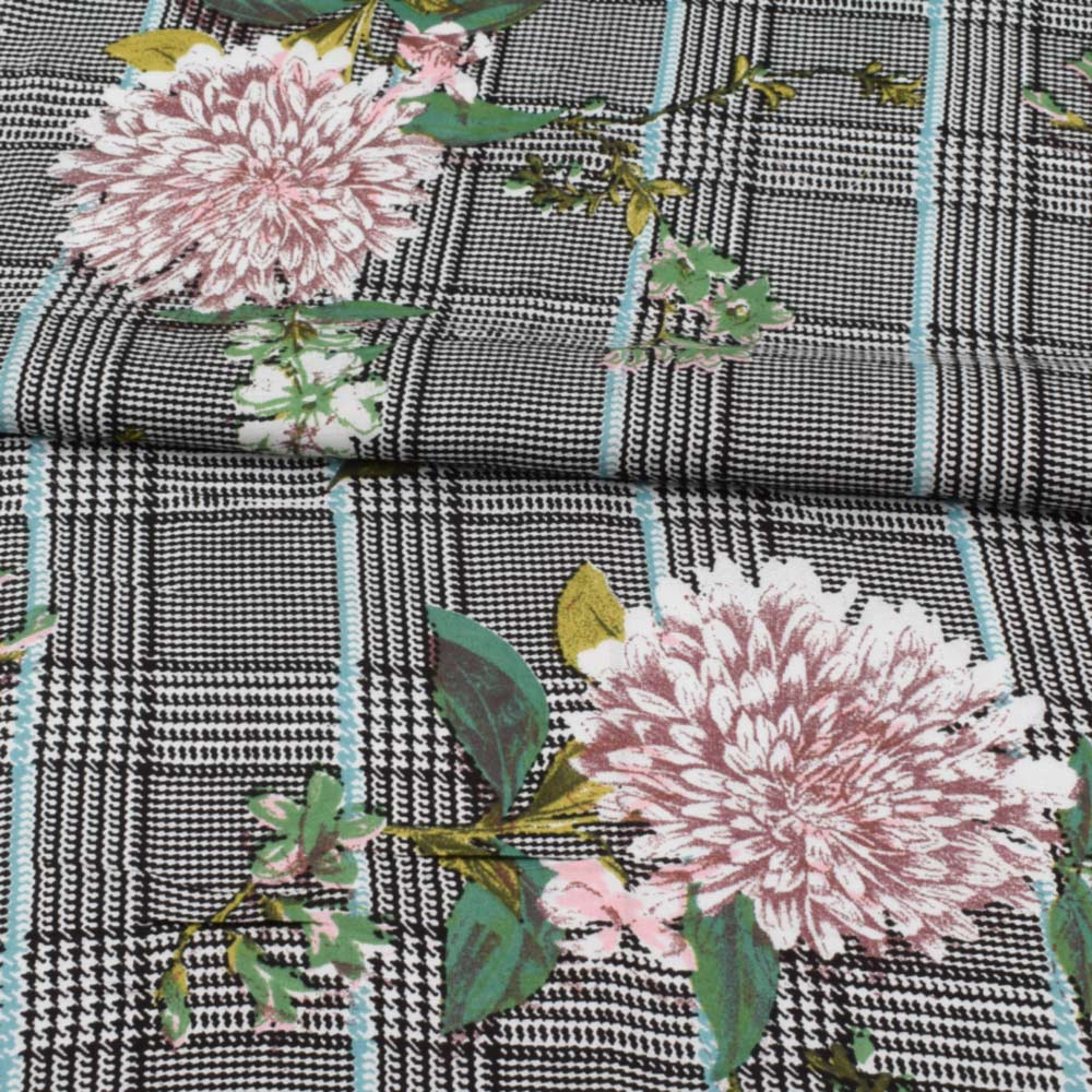 Віскоза біла в чорну клітинку, рожеві букети (2сорт), ш.140 купить в розницу и оптом