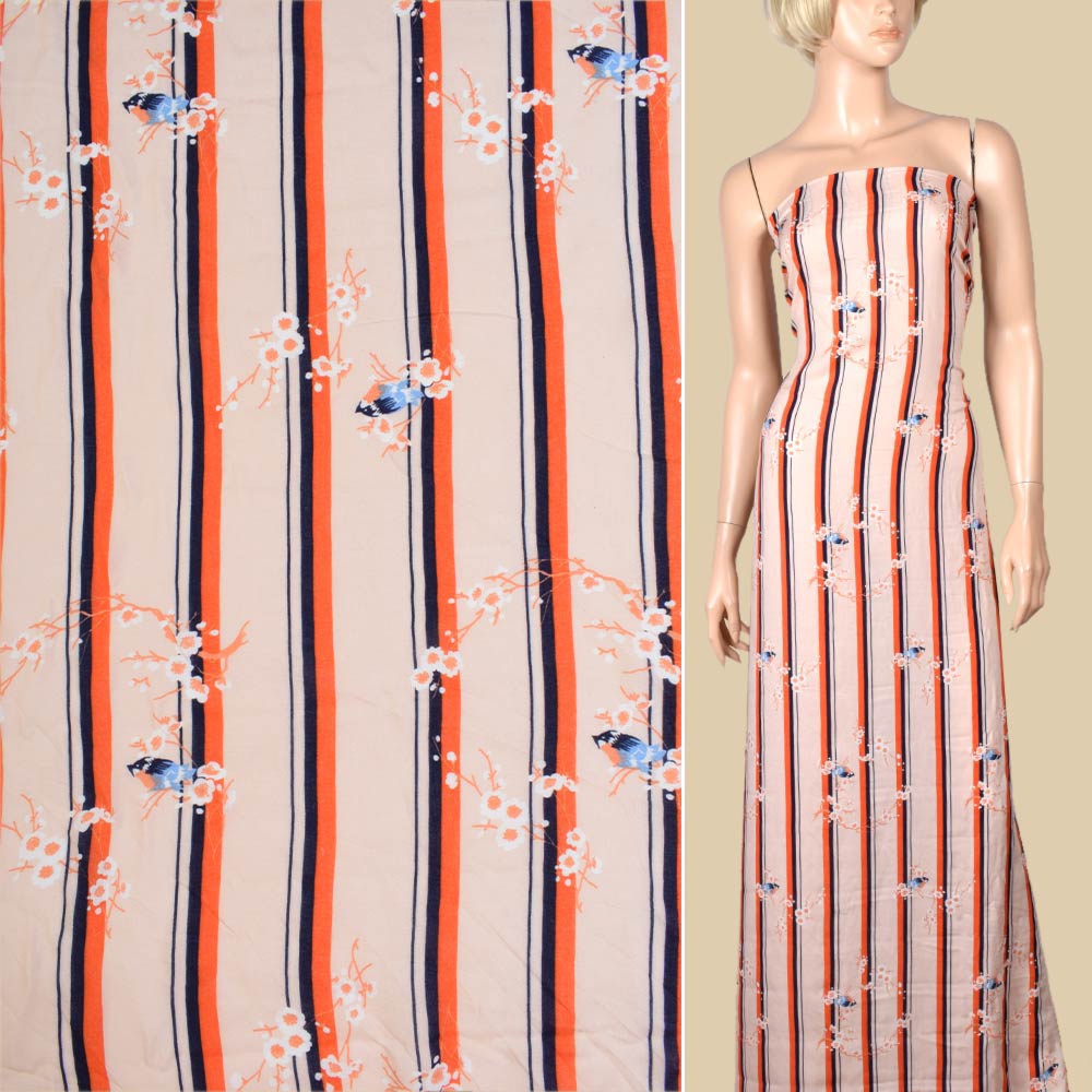 Віскоза персикова, синя + помаранчева смужка, пташка (2сорт), ш.145 купить в розницу и оптом