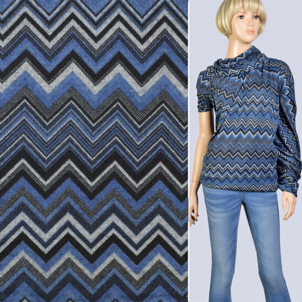 Трикотаж сірий чорно-синій зигзаг, ш.170 купить в розницу и оптом