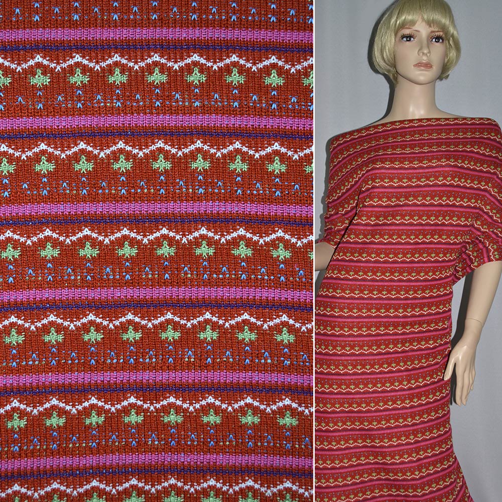 Трикотаж в'язаний в червоно-рожеві смужки з білим зигзагом (панчоха) ш.220 купить в розницу и оптом