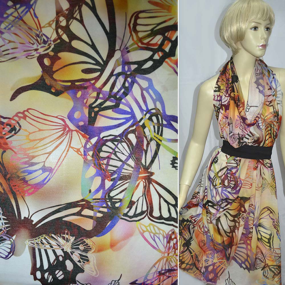 Трикотаж поліестер молочний в метелики ш.143 купить в розницу и оптом