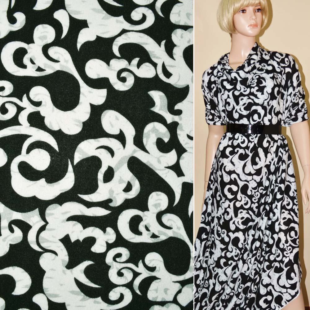 Трикотаж білий з чорною абстракцією ш.170 купить в розницу и оптом