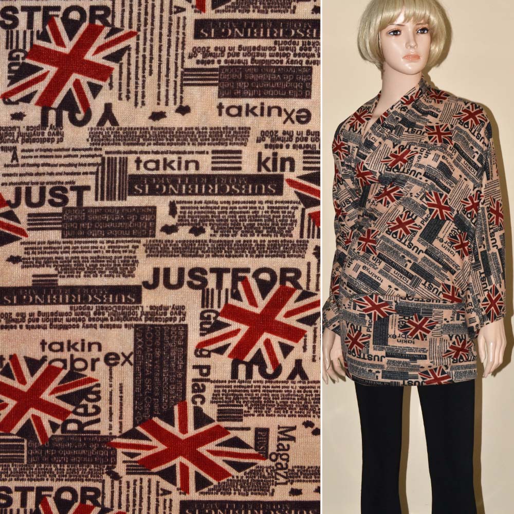 Трикотаж бежевий з чорним газета ш.170. Склад тканини: Поліакріл-85, Вовна-10, Еластан-5. Щільність тканини 174 г/м.кв. Країна виробник: Південна Корея. Трикотаж – це м'яка щільна матерія, не прозора. Приємна на дотик, комфортна в носінні. Завдяки вмісту синтетичних матерій, матеріал більш зносостійкий та надовго зберігає свій первісний вигляд. Тканина відрізняється своєю приємною текстурою, гарною розтяжністю, практично не здається. Трикотаж досить простий у догляді. Використовується для пошиття суконь, спортивних костюмів, легких жакетів, поло, футболок та багато іншого.Дякуємо за ваш вибір.